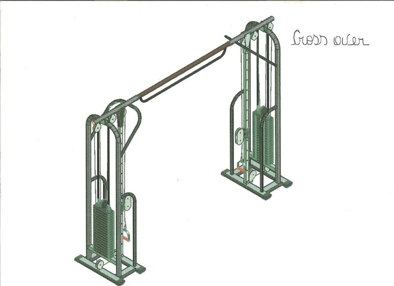 Fabricado em tubo retangular de 40x100x2 mm (base) em tubo redondo 3'x2mm, e os demais tubos 50x50, 40x40x2 mm de espessura parte móvel e fixa, Com 80 Kg de pesos em cadatorre tipo tijolinhos cada com 5 kg, guia dos tijolinhos em tubo de 1'x2mm, roldanas todas de metal co durabilidade de 10 a 15 anos.