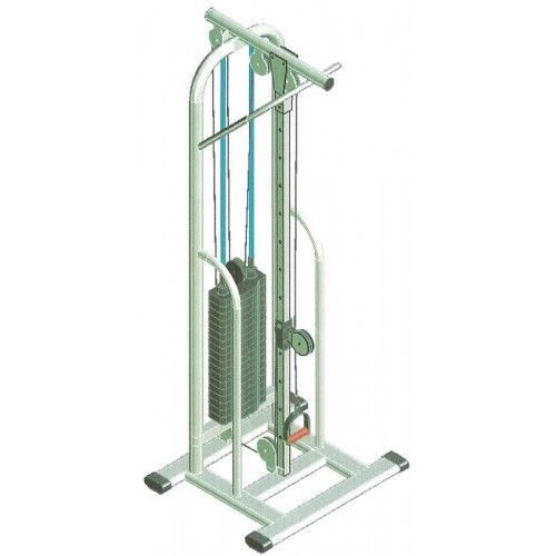 Fabricado em tubo retangular de 40x100x2 mm (base) Tubo 3'x2 mm e os demais tubos de 50x50x, 40x40x2 mm de espessura parte móvel roldanas de metal com durabilidade de 10 a 15 anos, com 80 Kg cada tipo tijolinhos guia dos tijolinhos zincado de 1'x2 mm, banco e encosto com espuma D28.